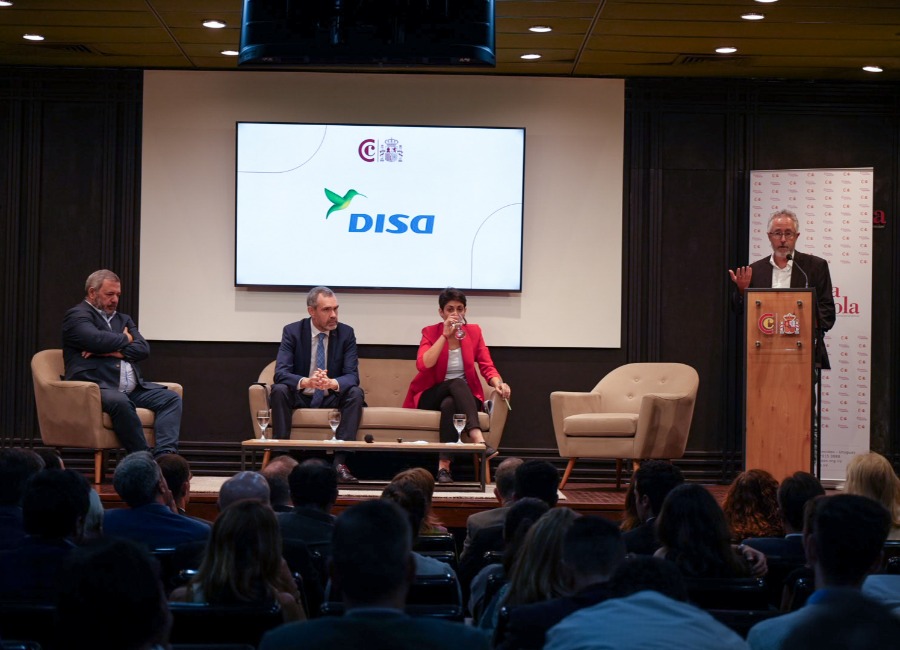 Hablando en la Cámara Española de Comercio junto a Verónica y a Mario